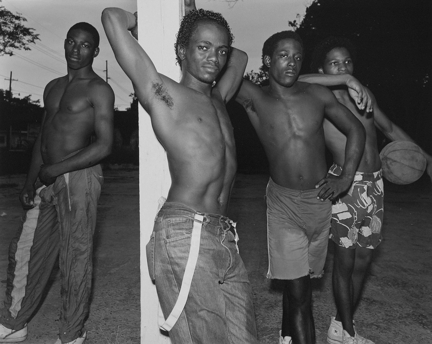 In the mid nineteen-eighties, Baldwin Lee began a photographic body of work that was initially funded by a John Simon Guggenheim Memorial Fellowship Grant and a National Endowment for the Arts Fellowship Grant. His travels took him all through the south and the prominent subject from this body of work became “Black Americans in the South.” The photography is stunning and powerful. His use of the large format camera has the clarity of a dedicated and severely focused artist excited by the potential inspirations that exist within a wandering photographic exploration. Baldwin is synonymous with Tennessee because of his indelible presence and delivered influence as a tenured professor at the University of Tennessee where, in 1982, he created the photography program. When looking at the photograph of the basketball players, you cannot escape the directness of interaction between the subjects and the photographer. It is something that is so masterfully done, that thoughts of the photographer’s close presence fade away and are immediately replaced by the experience of the viewer in the gallery standing before the photograph. There is a certain implied sexuality to the photograph that is probably better read as a strutting display of confidence within the timelessness and invincibility of young manhood.