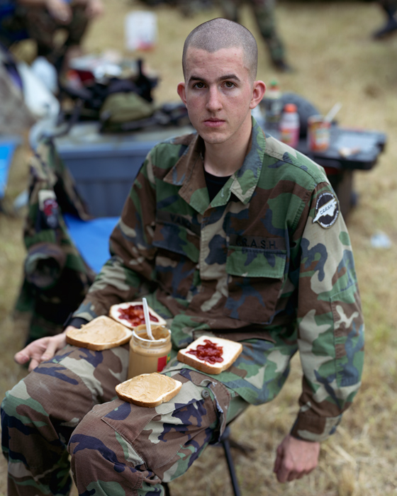 The soldier is a young man with a boyish presence that is at first disguised by the uniform that he wears. His right hand is awkwardly fixed and his eyes are still gentle and seemingly innocent. The peanut butter and jelly sandwiches could also symbolize his soon-to-be-compromised innocence that is possibly still lingering. What does the uniform arm-patch, that reads “CRASH” imply? Some of the things that happen in the frame when taking photographs are not seen until long after the moment that the photo was taken. Alec’s photographs often seem like everything is meant to be exactly where it’s supposed to be both physically and psychologically to suggest a specific metaphor and deliver the feeling and power of the portrait. This image is from Alec’s body of work entitled, “The Last Days of W.”